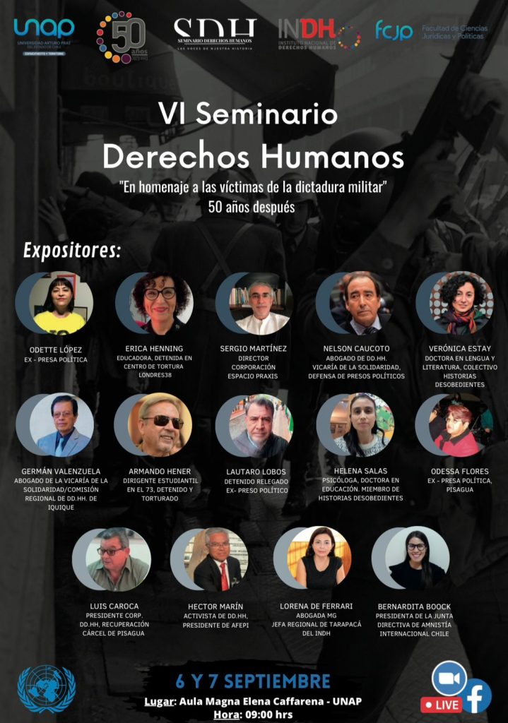 Esta VI versión del seminario de derechos humanos se realizó en el contexto de la conmemoración de los 50 años del golpe de estado ocurrido en Chile el 11 de septiembre de 1973.